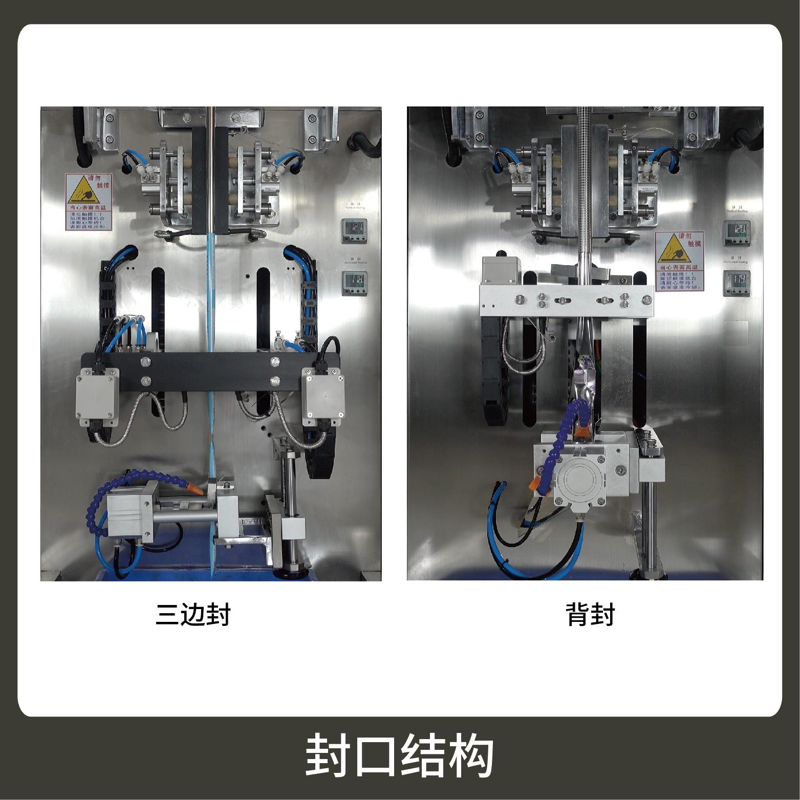 3、觸摸屏操作,PLC 控制,伺服電機控制袋長,性能穩(wěn)定、調(diào)整方便、檢測準(zhǔn)確。智能式溫控儀,PID調(diào)節(jié),保證將溫度的誤差范圍控制在1℃以內(nèi)。